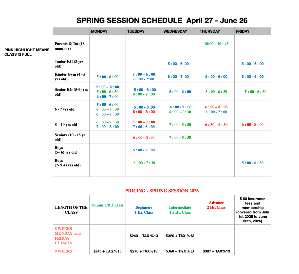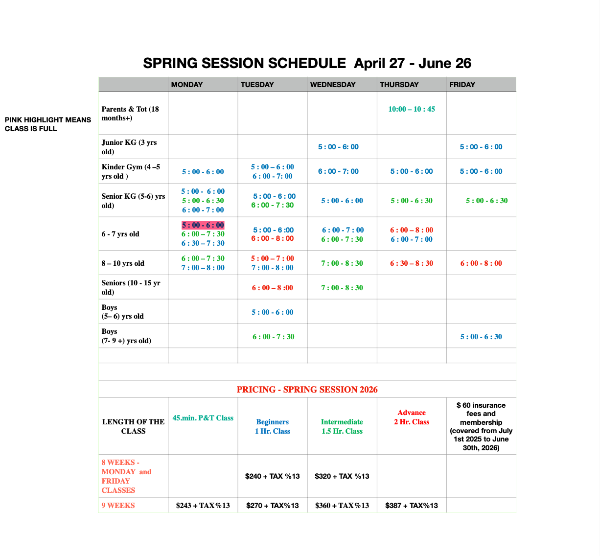 SPRING 2026 SESSION SCHEDULE - Registration is now OPENED!